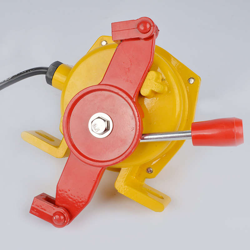 雙向拉繩開關(guān)安裝于皮帶輸送機的兩側(cè)的機架上,用鋼絲繩沿著輸送機兩側(cè)把開關(guān)連接起來。當(dāng)輸送帶設(shè)備發(fā)生緊急事故時,在現(xiàn)場沿線任意處拉動鋼絲繩,鋼絲繩牽動驅(qū)動臂旋轉(zhuǎn),通過傳動軸帶動扭力彈簧使精密凸輪發(fā)生位移,驅(qū)動微動開關(guān)切斷控制線路,使得輸送機停止運行。